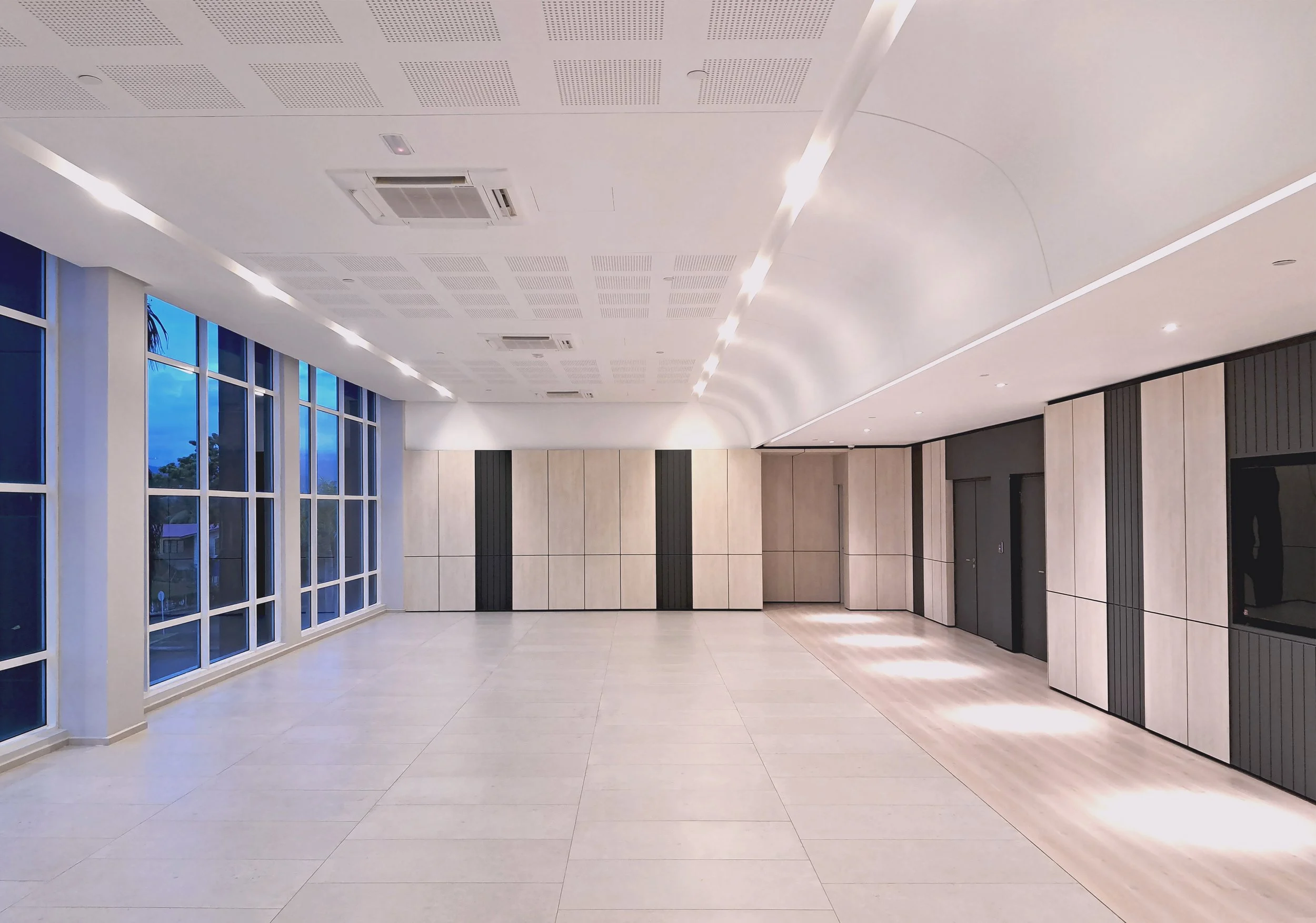 A natural light-inspired material and color palette was developed to unify the various levels and zones. Each lift lobby, reception, and corridor shares a consistent identity, yet each is given its own distinctive twist in style and form, shaped by the spatial axis and surrounding focal points. While the continuity of materials ties the spaces together, subtle variations in detailing ensure a dynamic, non-repetitive experience. In contrast, the auditoriums were designed to break from this language, offering a bold, immersive environment.